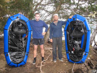 6pm - surprise - two kayakers have just arrived at Cavern Camp. Matt Brain (wilderness photographer) and John from Launceston with inflatable kayaks and a mountain of gear. They apparently walked in to Pindars Peak from Lune River, then to Leaning Tea Tree Saddle, Mount Victoria Cross and then paddled/bush-bashed via an unnamed creek to Salisbury River - to visit the spectacular and remote Vanishing Falls - and eventually to New River. A combination of kayaking, portaging and bush-bashing. What legends!