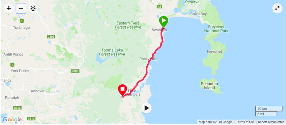 Day 14 - Thursday 8/11/18 Swansea to Little Swanport (33.9kms)