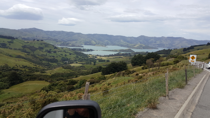 Returning to Christchurch we decided we had enough time to take a side trip to Akaroa. As this was something of a snap decision we had not considered the road conditions. If we had we may have decided not to make the visit in a large campervan. Matthew did an excellent job of negotiating the hundreds of tight bends on very steep roads, with large drops off to the side on many occasions. Akaroa itself was what I considered to be a typical coastal tourist town, with a heavy French influence that reflected its historical roots.